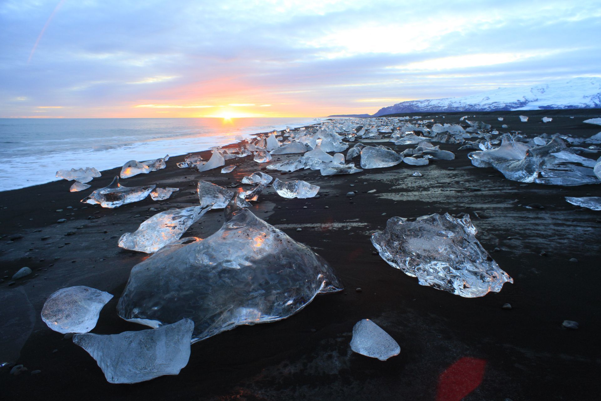 Day 4 - Skaftafell & Glacier Lagoon. Hike among glaciers and rugged peaks in Skaftafell. Visit Fjallsárlón and Jökulsárlón and witness floating icebergs in serene lagoons. Walk along the Dimond Beach touching the sparkling ice fragments on the black volcanic sand.